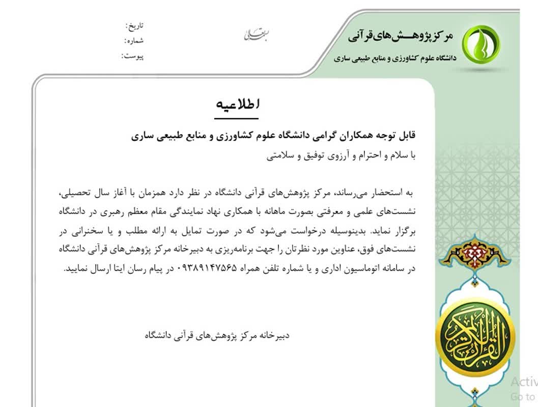 اطلاعیه مرکز پژوهش های قرآنی